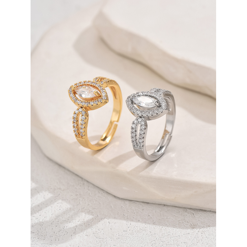 Affordable Luxury Fashion Water Drop Zircon Open Ring Female Style 6 Silver