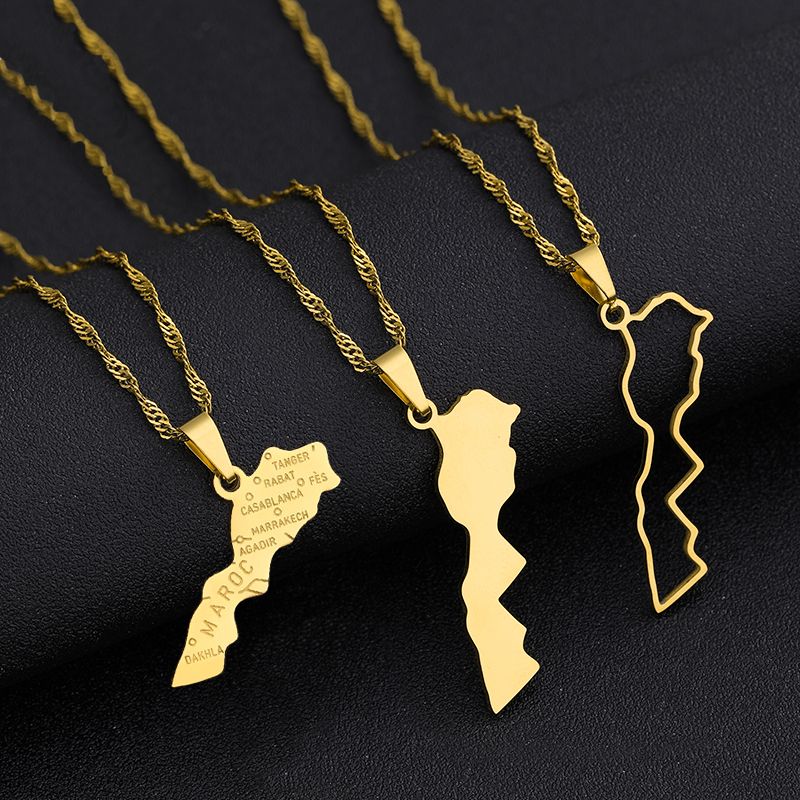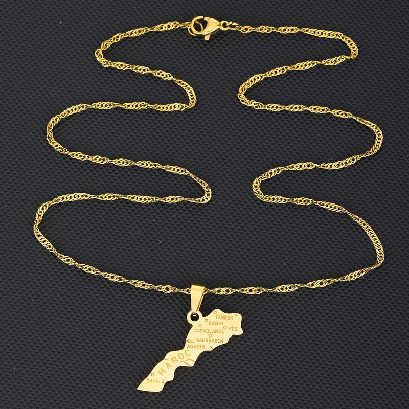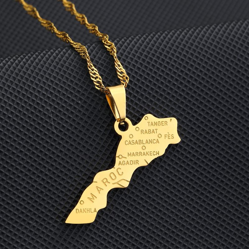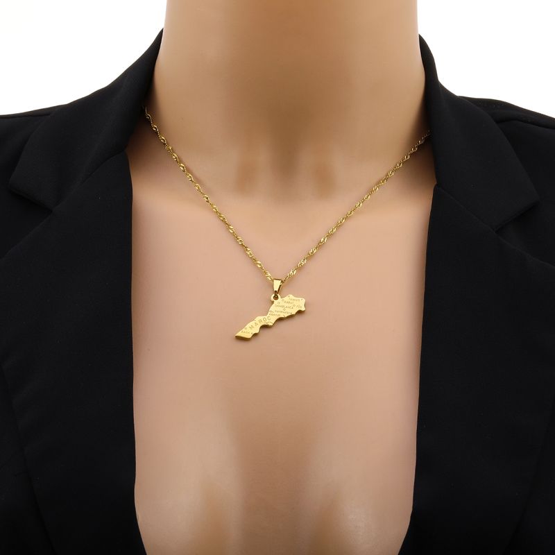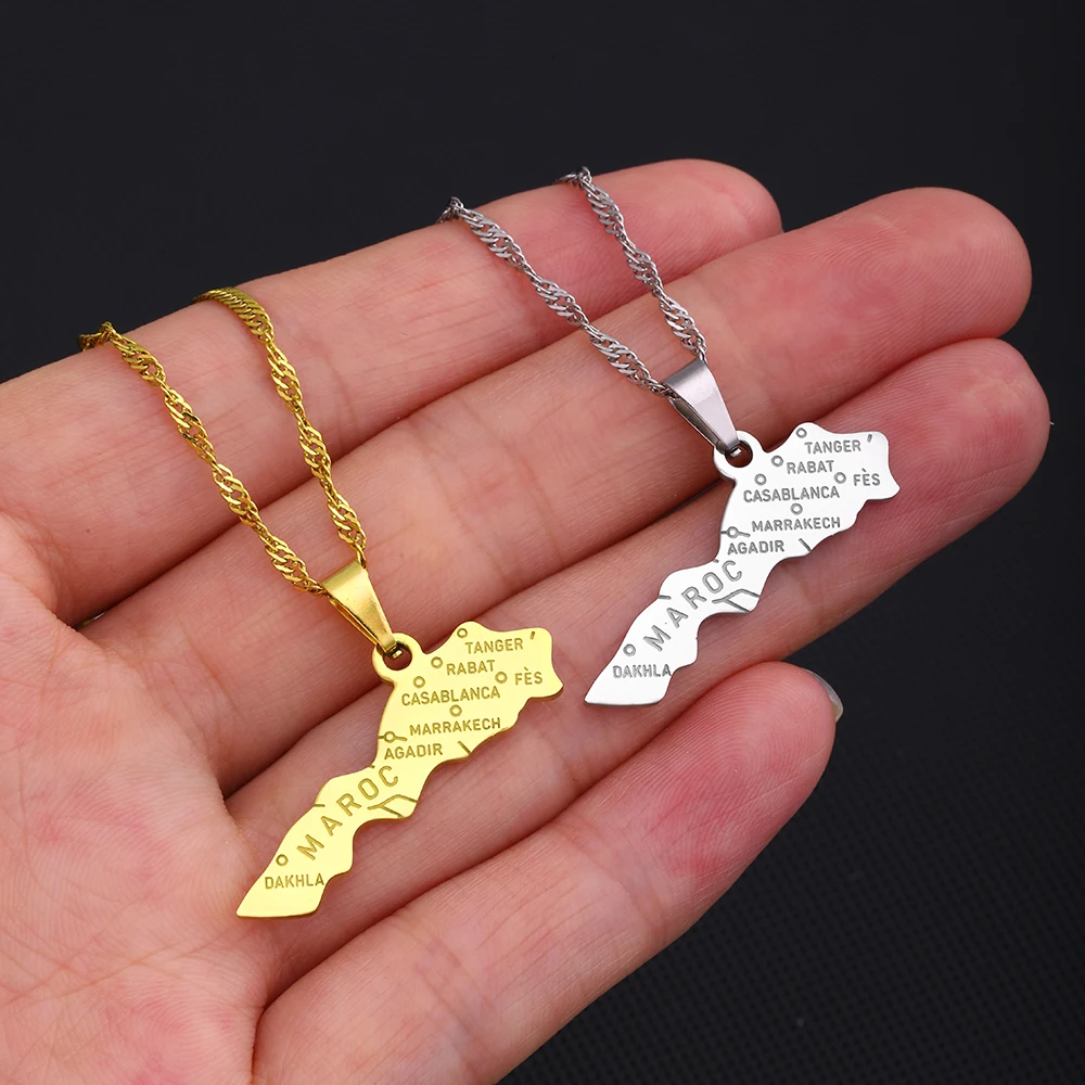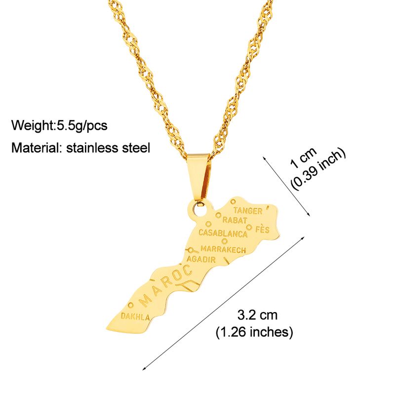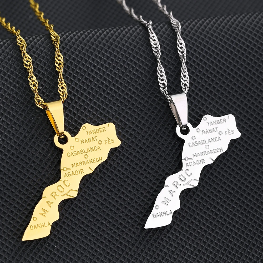 African Morocco Map City Pendant Necklace Stainless Steel Men Women المملكة المغربية Maps Jewelry Gift
