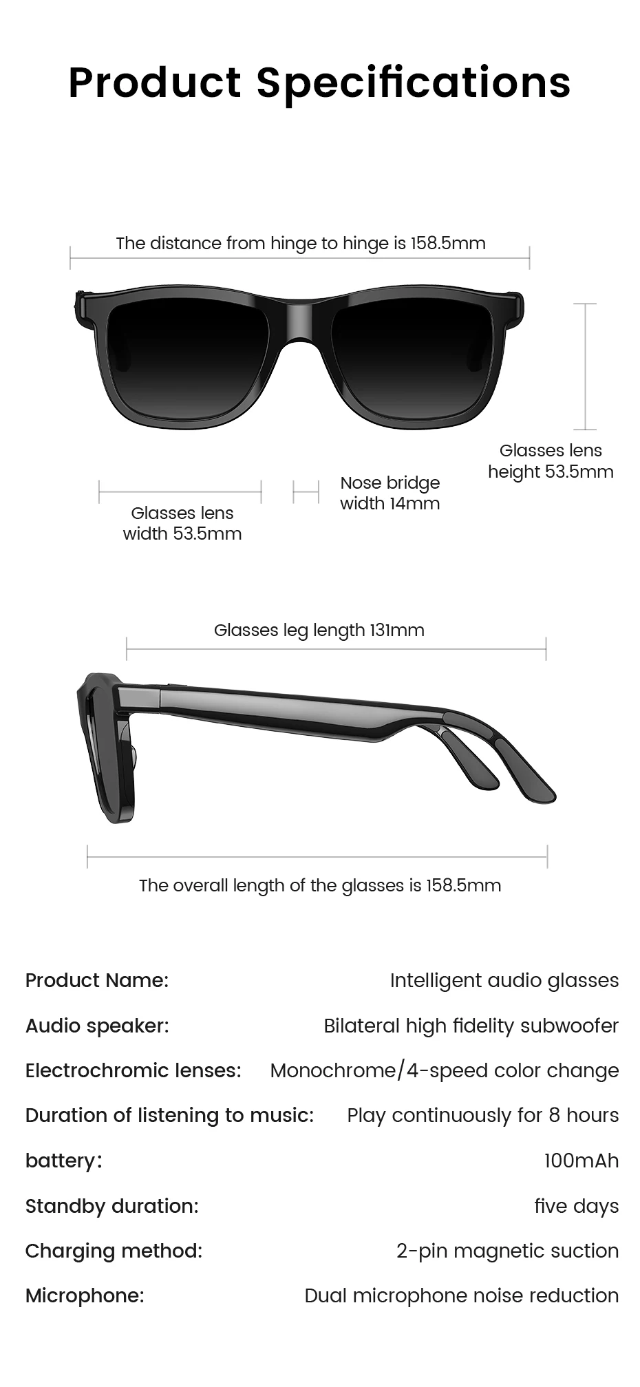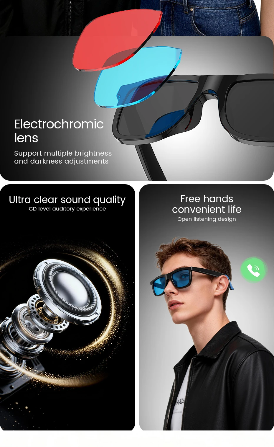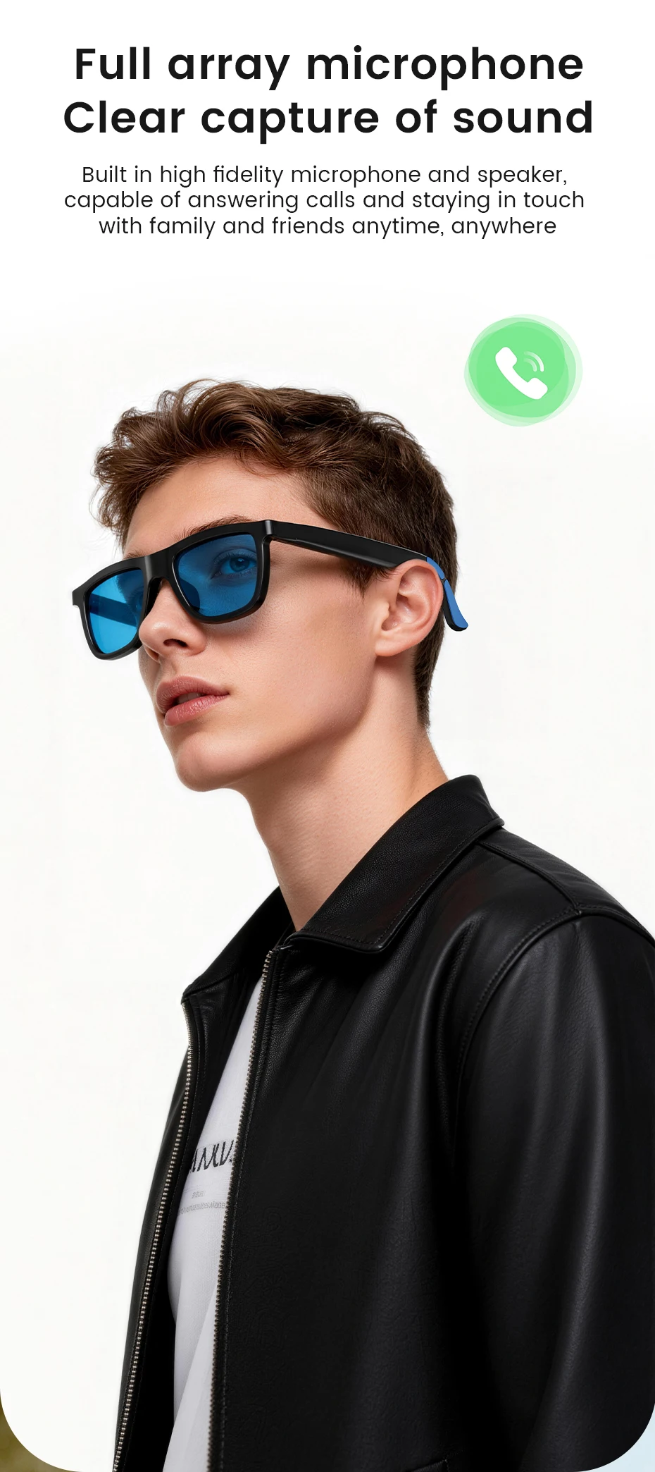 Experience crystal-clear audio with our Smart Audio Glasses, featuring advanced Bluetooth 5.3 for seamless sound transmission.