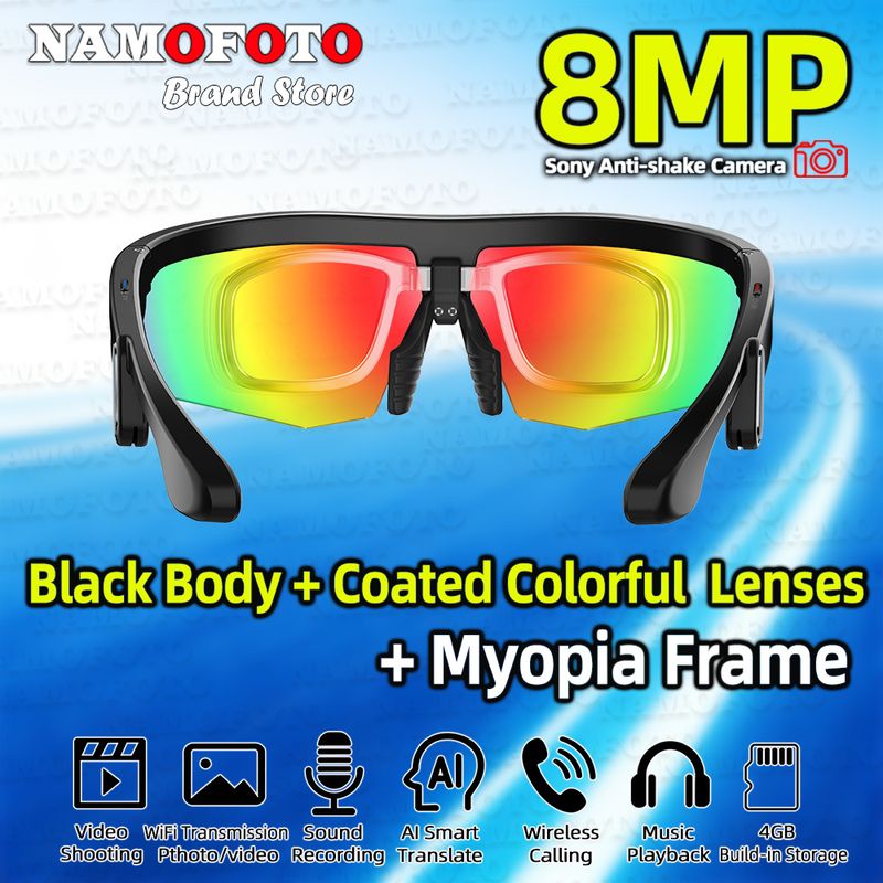 AI Smart Cycling Glasses 8MP Camera 1200P Video Record Real-time Translation BT Call ChatGPT 290mAh Sports Eyewear for Men Women