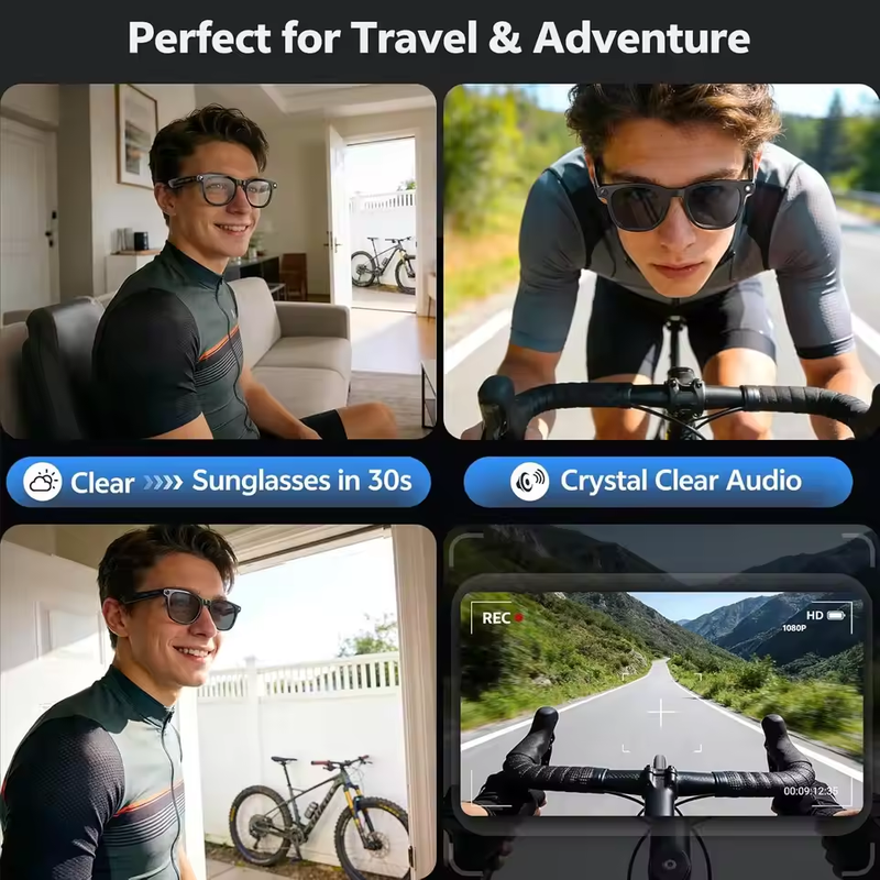 AI Smart Glasses 1080P Camera Voice Assistant WiFi Transfer Wear Detection HD Calling Music Playback IP65 Waterproof Outdoor Use