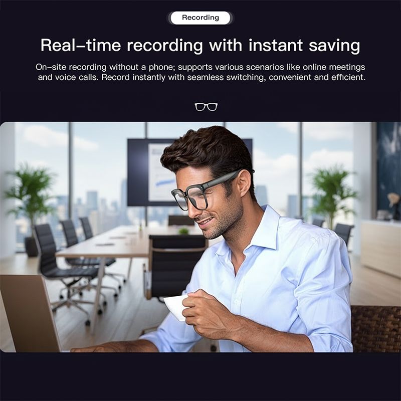 AI Smart Glasses,Camera Glasses For Men ,Sports SunglassesNice to meet you! Let me give you a brief introduction. We offer a variety of very stylish wireless Bluetooth glasses, available in multiple colors and styles, including standard Bluetooth glasses (without translation functionality) as well as AI real-time translation glasses that support multiple languages. We also have smart glasses with high-definition photo and video recording, and the app's language will default to match the phone's system language. These glasses are essential for business travel, remote meetings, and sports, combining headphones with glasses to become a music device.