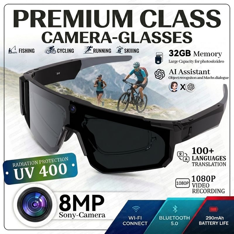 AI Smart Glasses with Camera 4K Video Recording Glasses Polarized Sports Sunglasses EIS Stabilization ual Mic Noise Canceling