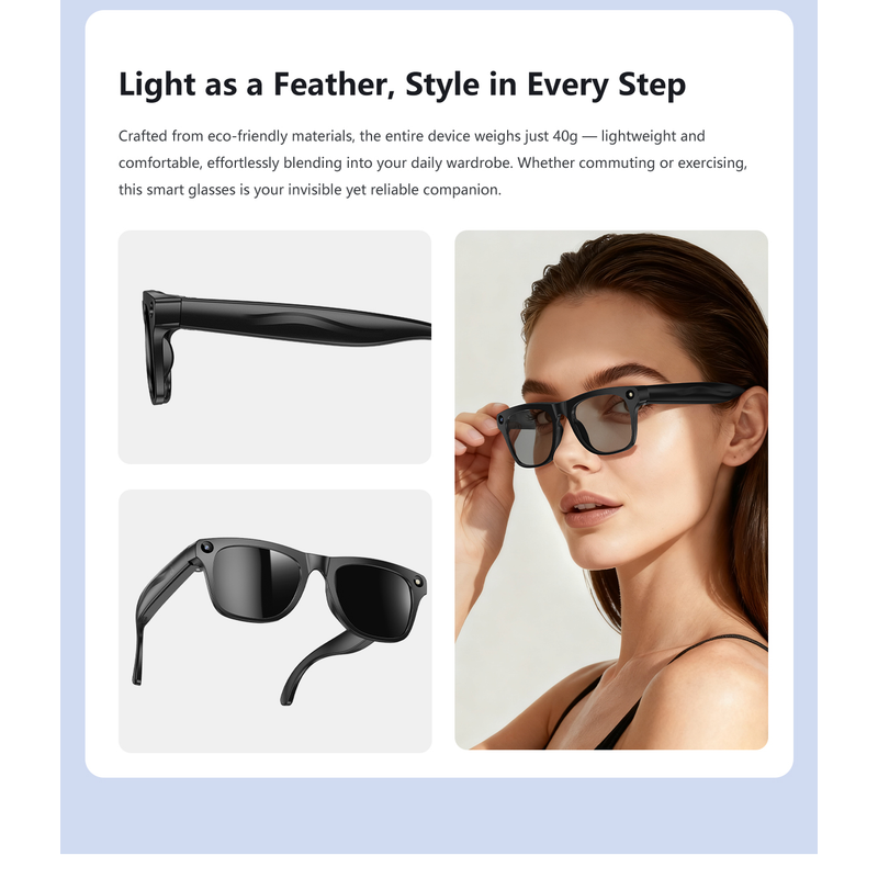 - Full-Featured & Easy to Use: Supports AI voice assistant, photo/video recording, music control, calling, translation, intelligent image recognition, and local music playback.