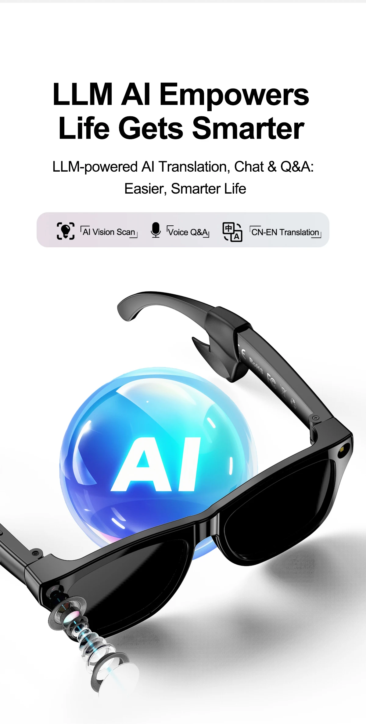 AI Smart Glasses XK One Mac Electrochromic Lenses Voice Touch Color Changing 8MP HD Camera Translation Intelligent Wearable