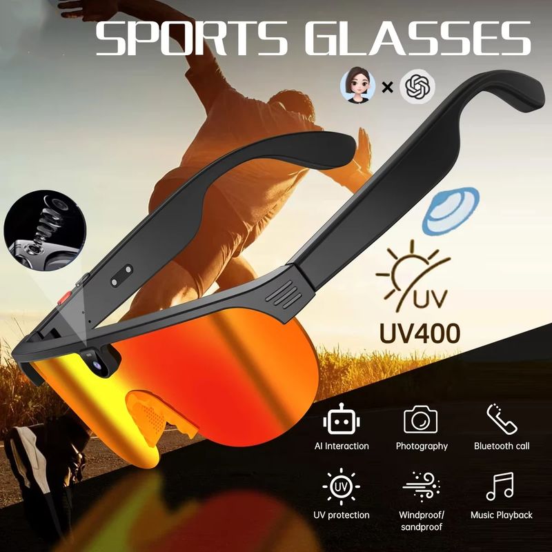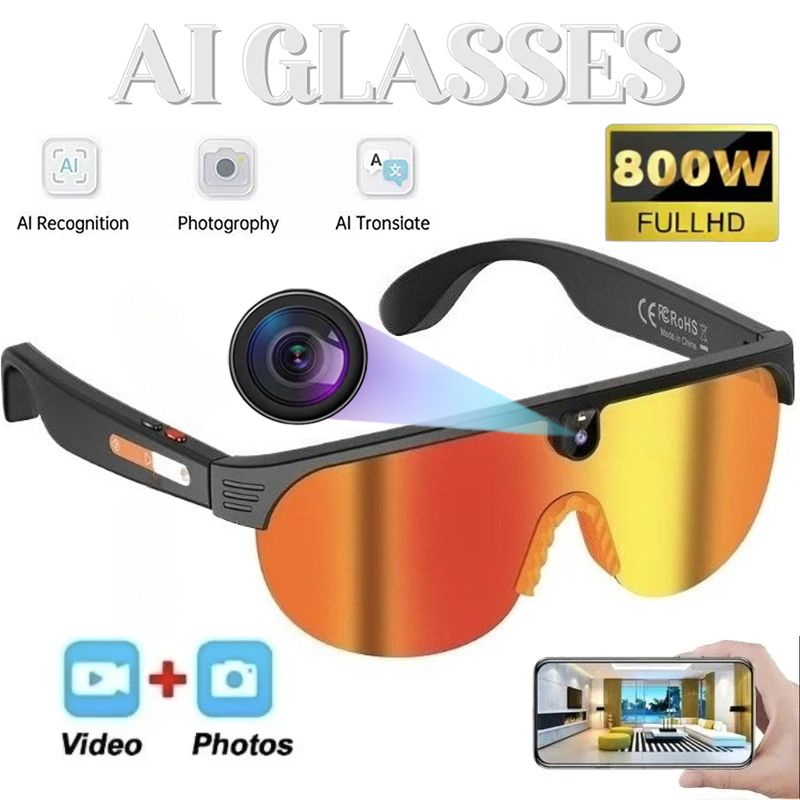 AI Smart HD 800W Camera Bluetooth Call Translation Video with Translation Sunglasses Call Music HD Color Change Sports Glasses