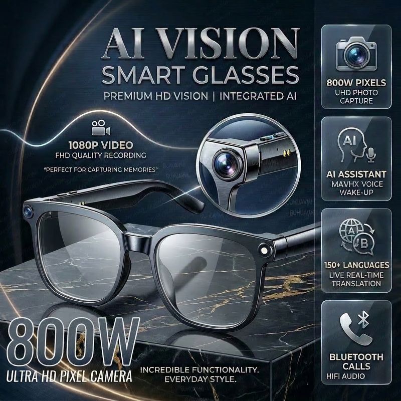 AI Travel Business Smart Glasses 1080P Camera Glasses Video Recording & Photo Taking 140+ Language Real-Time Translation Glasses