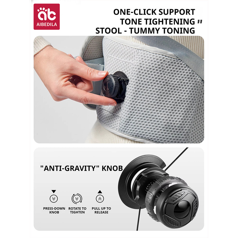 • Anti - Gravity Knob: Adjusts easily, no pressure on the abdomen.