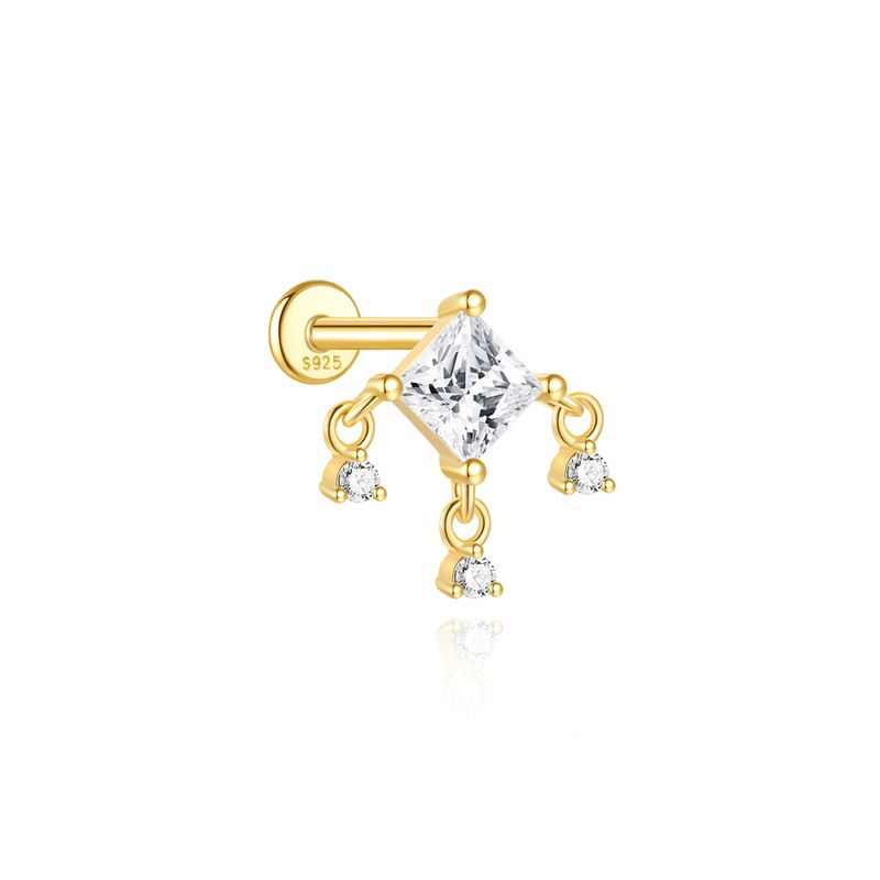 AIDE 1PC 925 Sterling Silver Lucky Red Koi Piercing Earring For Women Geometric Chain Zircon Ear Bone Stud Earrings Fine Jewelry