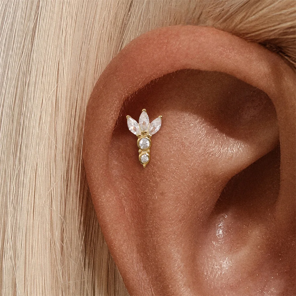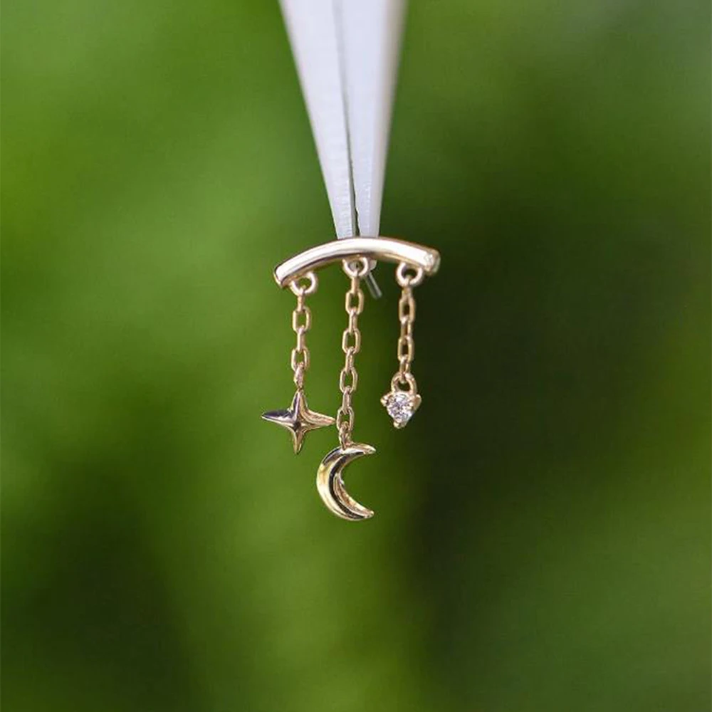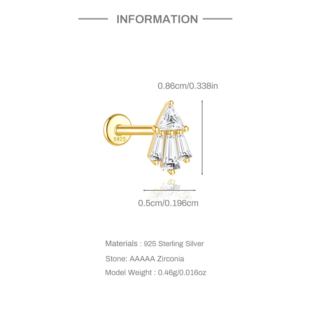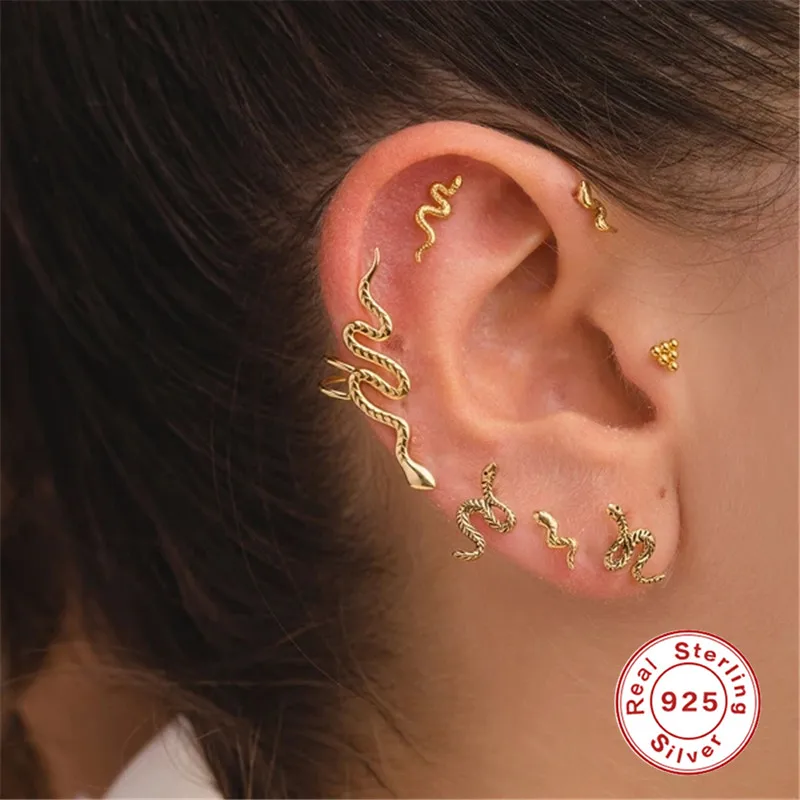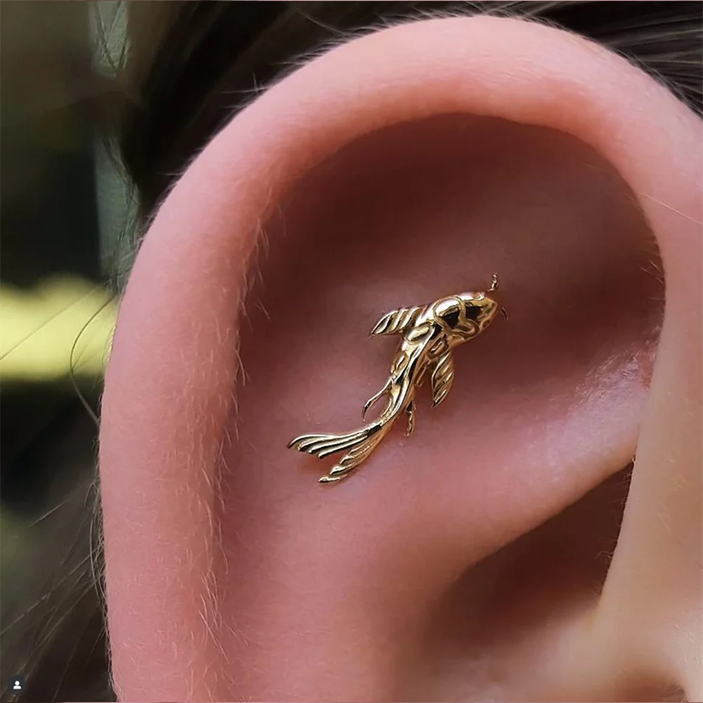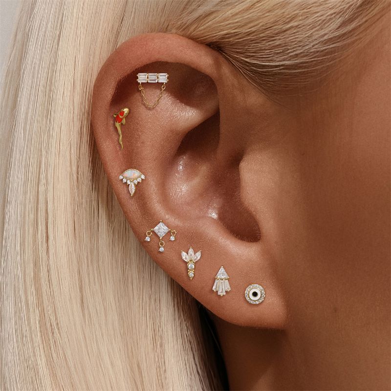 AIDE 1PC 925 Sterling Silver Lucky Red Koi Piercing Earring For Women Geometric Chain Zircon Ear Bone Stud Earrings Fine Jewelry