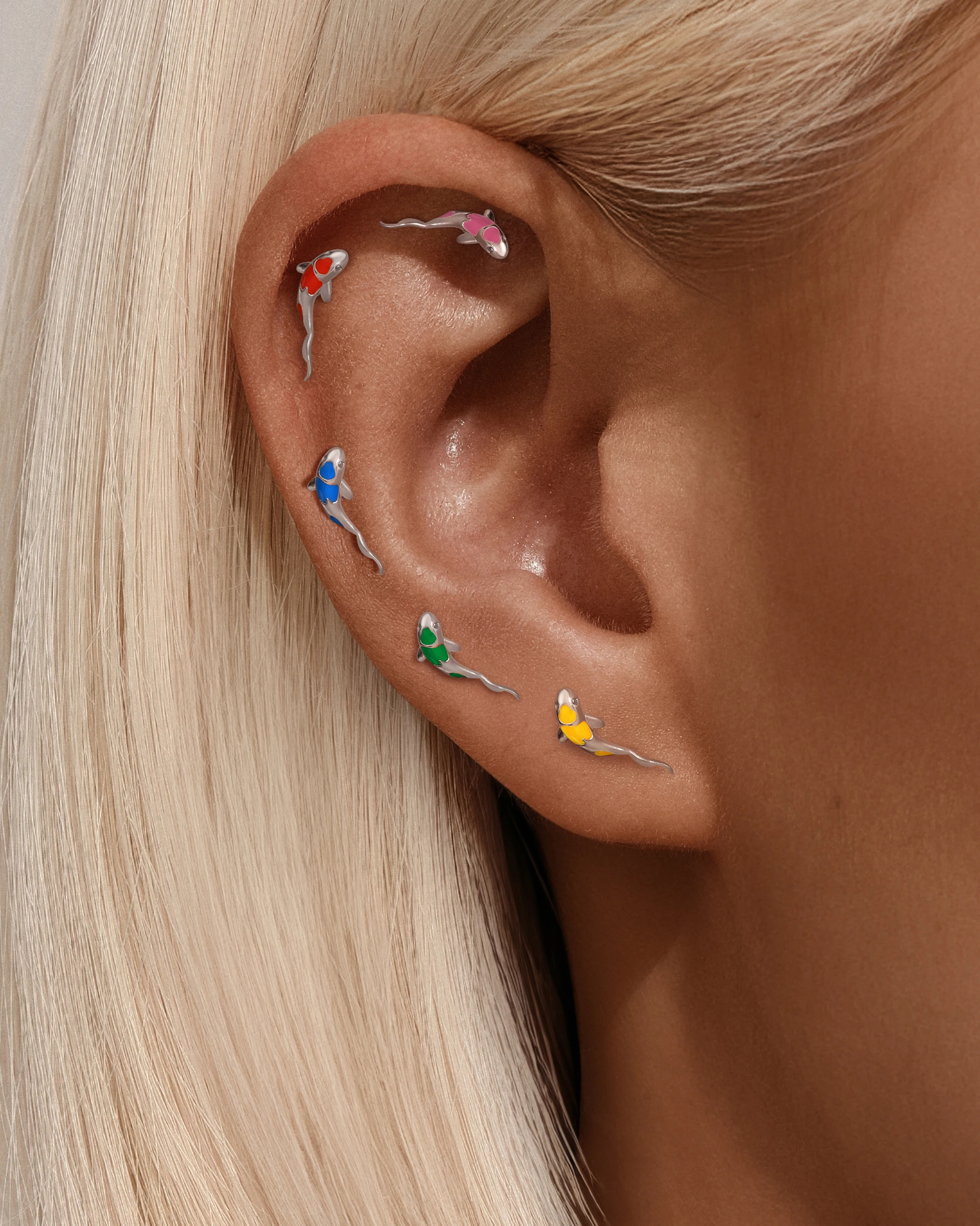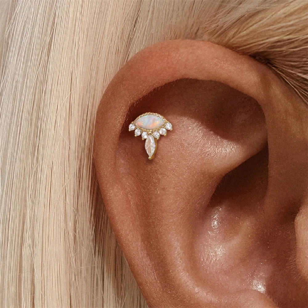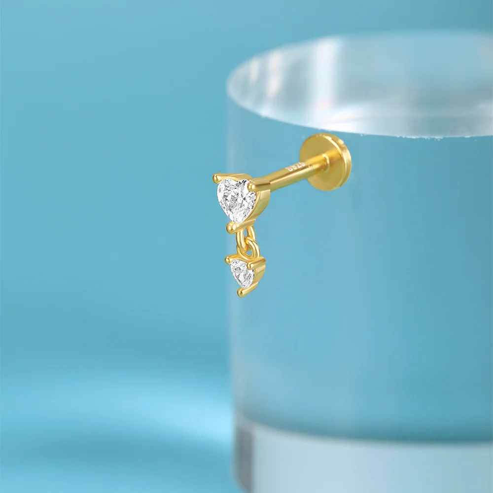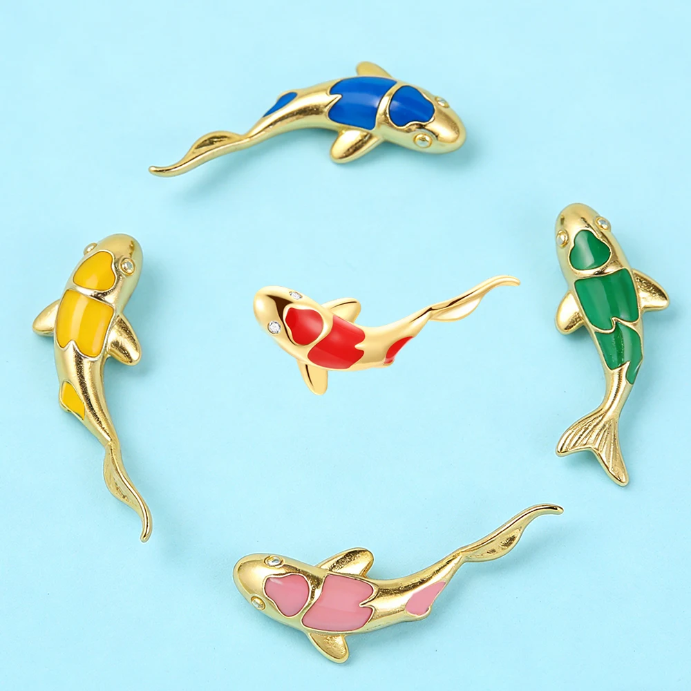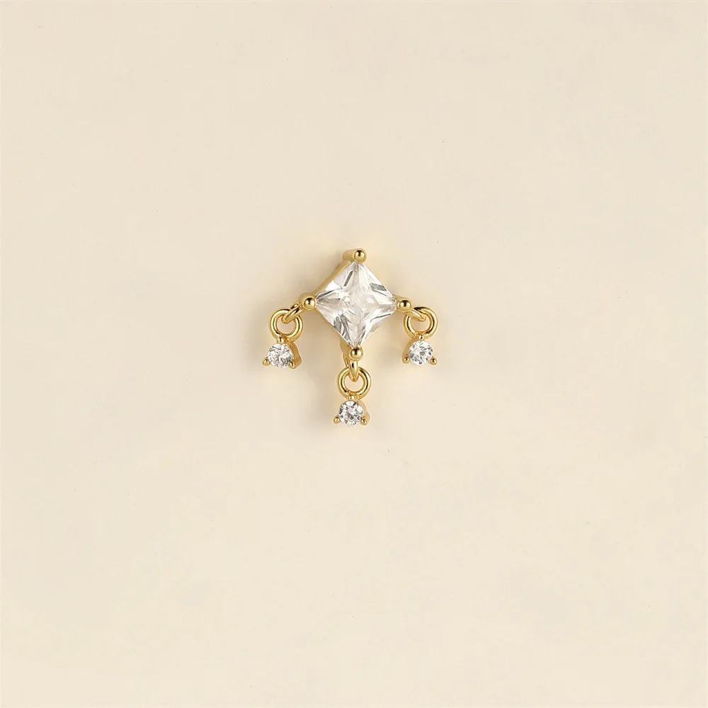 AIDE 1PC 925 Sterling Silver Lucky Red Koi Piercing Earring For Women Geometric Chain Zircon Ear Bone Stud Earrings Fine Jewelry