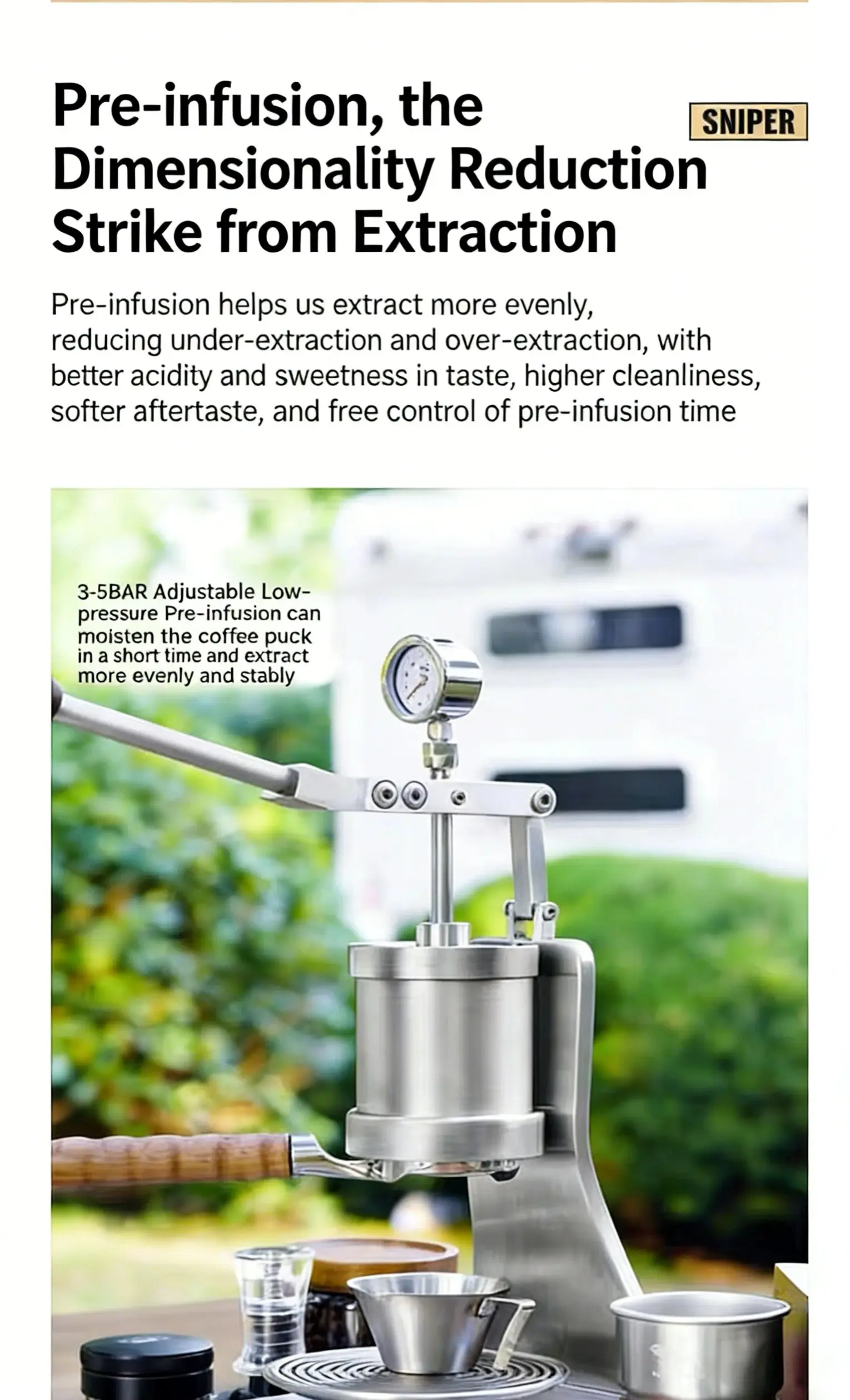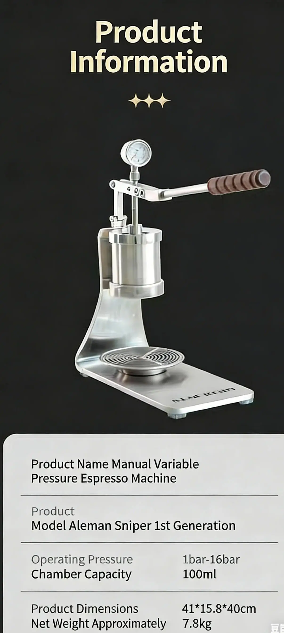Ailaiman Manual Lever Espresso Coffee Machine Sniper, Variable Pressure Extraction, Italian Style