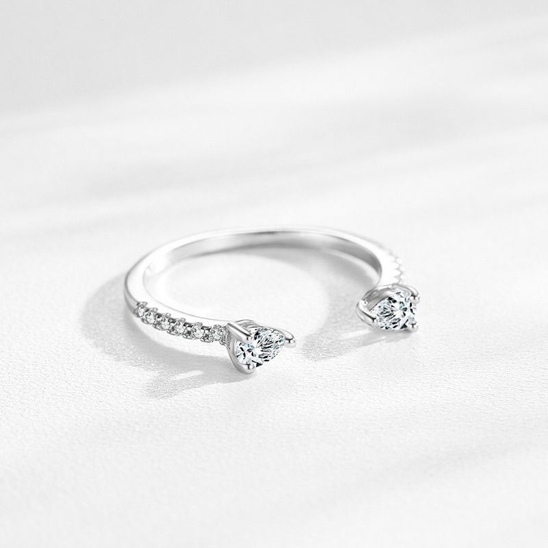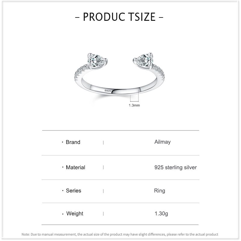 Ailmay Solid 925 Sterling Silver Water Drop Shape Dazzling CZ Adjustable Finger Ring For Women Girls Birthday Party Jewelry Gift