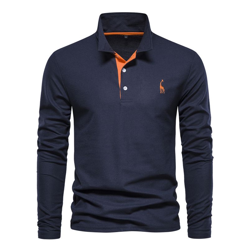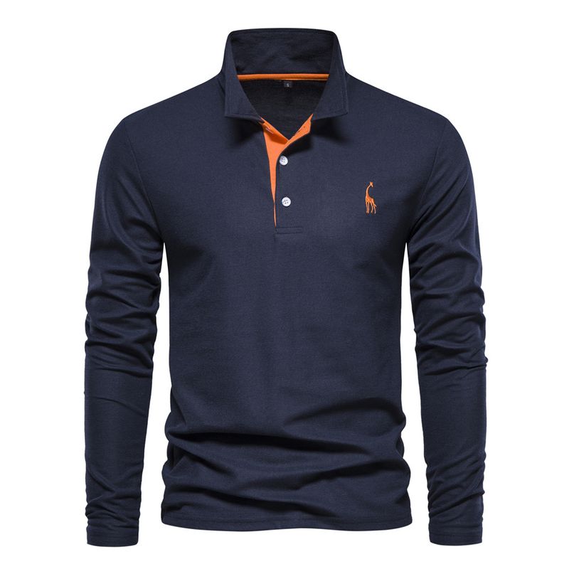 AIOPESON 2023 New Men's Deer Embroidery Polo Shirts Solid Color Long Sleeve Social Business Male