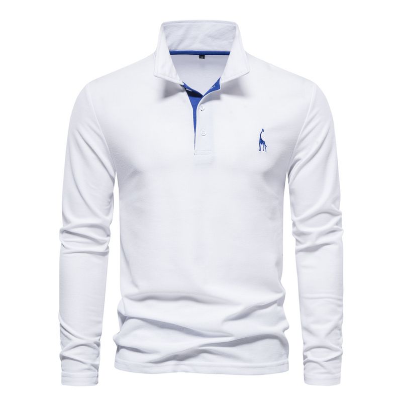 AIOPESON 2023 New Men's Deer Embroidery Polo Shirts Solid Color Long Sleeve Social Business Male