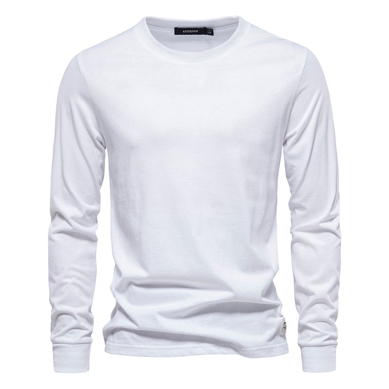 AIOPESON Solid Color Cotton T Shirt Men Casual O-neck Long Sleeved Mens Tshirts Spring Autumn High Quality Basic T-shirt Male