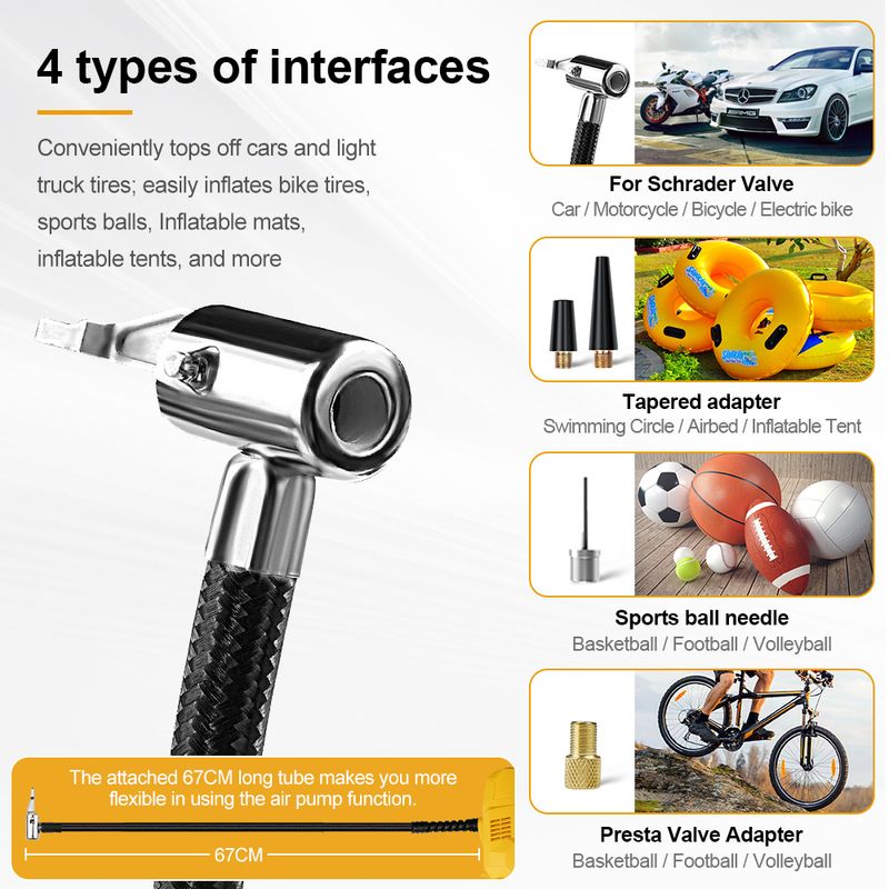 ● The High-Pressure Inflator features a 67CM hose length that provides better reach.