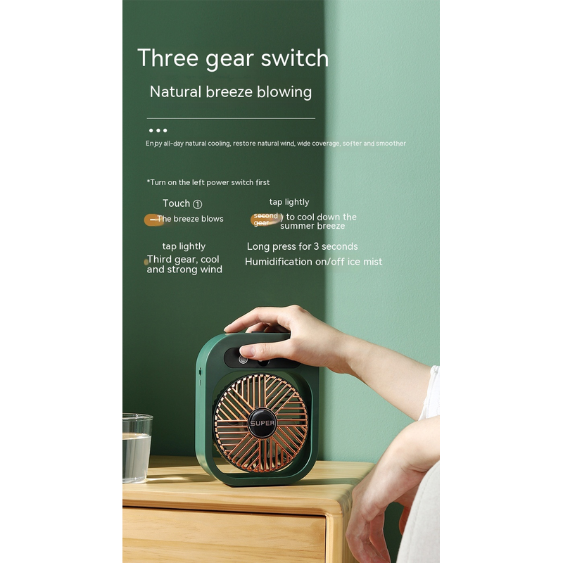 【Cooling Mist】The cooling fan uses atomization technology to atomize water, humidify the air, and moisturize the skin.
