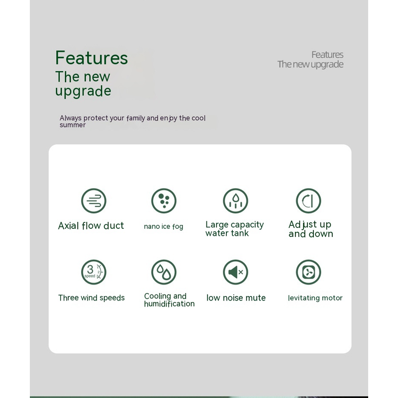 【Cooling Mist】The cooling fan uses atomization technology to atomize water, humidify the air, and moisturize the skin.