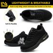 Super light safety shoe:It is like the weight of a pair of running shoes. They can help you to work happily all day without exhausting your feet. With super soft insoles and High elastic sole, your feet are safe and comfortable. Flying knit upper is very soft, Keep your feet comfortable and breathable.