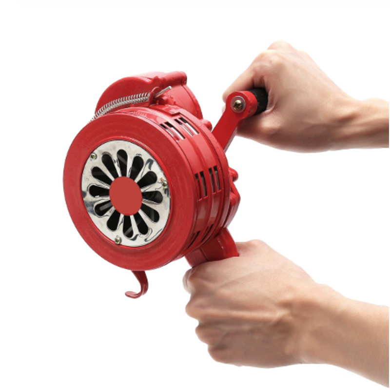 By manually rotating the handle, the gearbox of the transmission step by step acceleration to achieve the purpose of sound, the sound depends on the rotation speed of the handle.