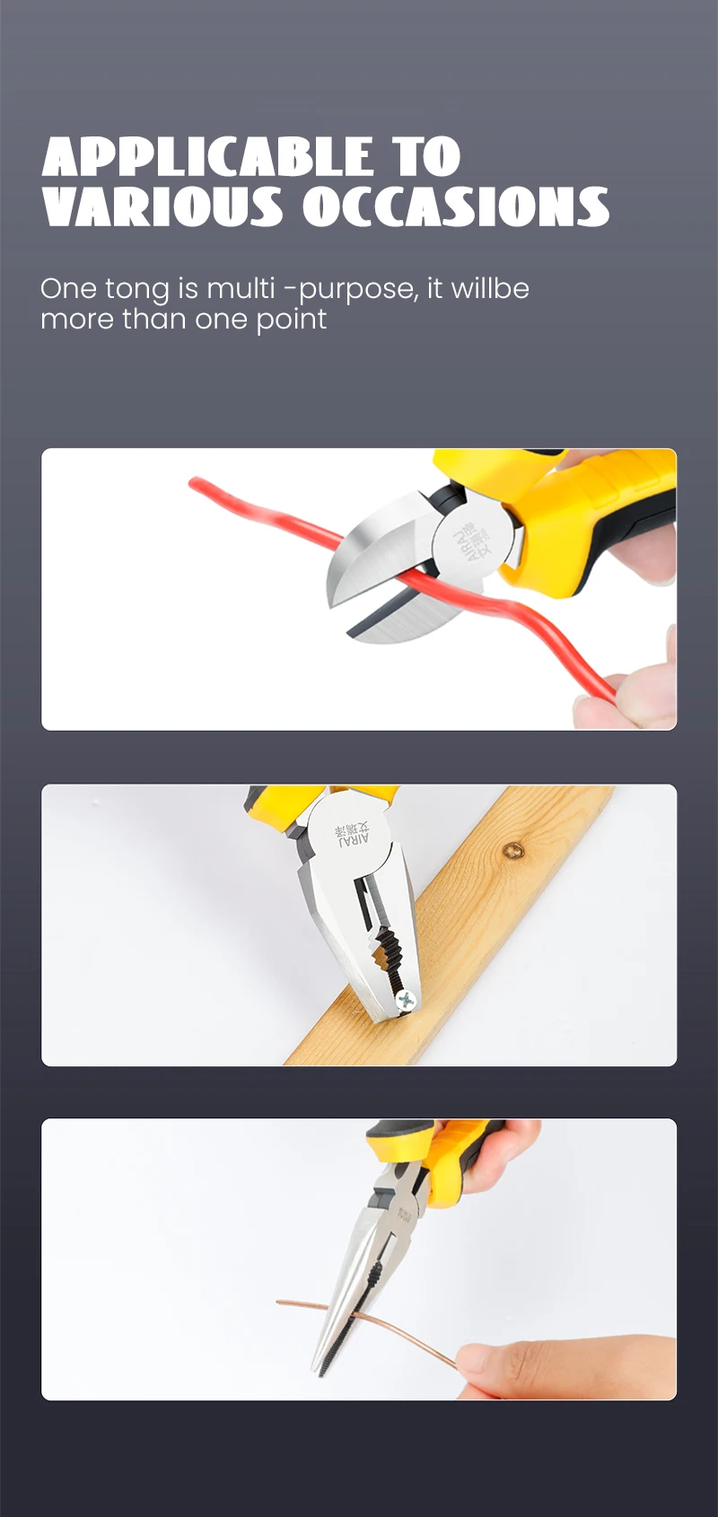 【 Versatile Use 】 Perfect for gripping, cutting, bending, and twisting wire, cable, and other materials. Ideal for electricians, plumbers, carpenters, car mechanics and all DIY enthusiasts.