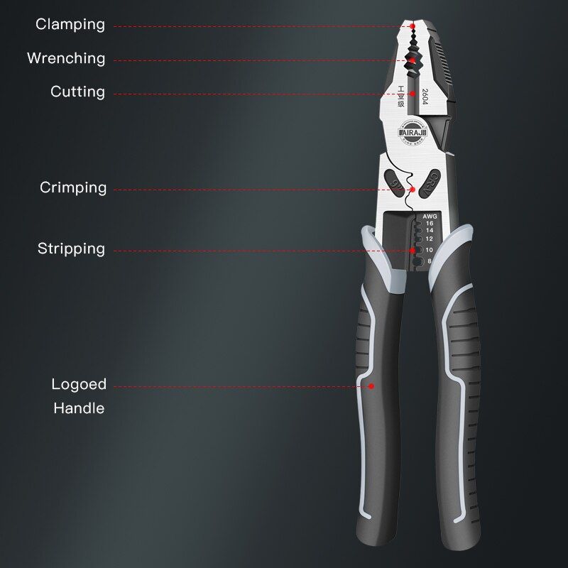 AIRAJ 7/8/9 inch Multifunction Pliers Combination Pliers Stripper Crimper Cutter Heavy Duty Wire Pliers Diagonal Pliers Hand Tools