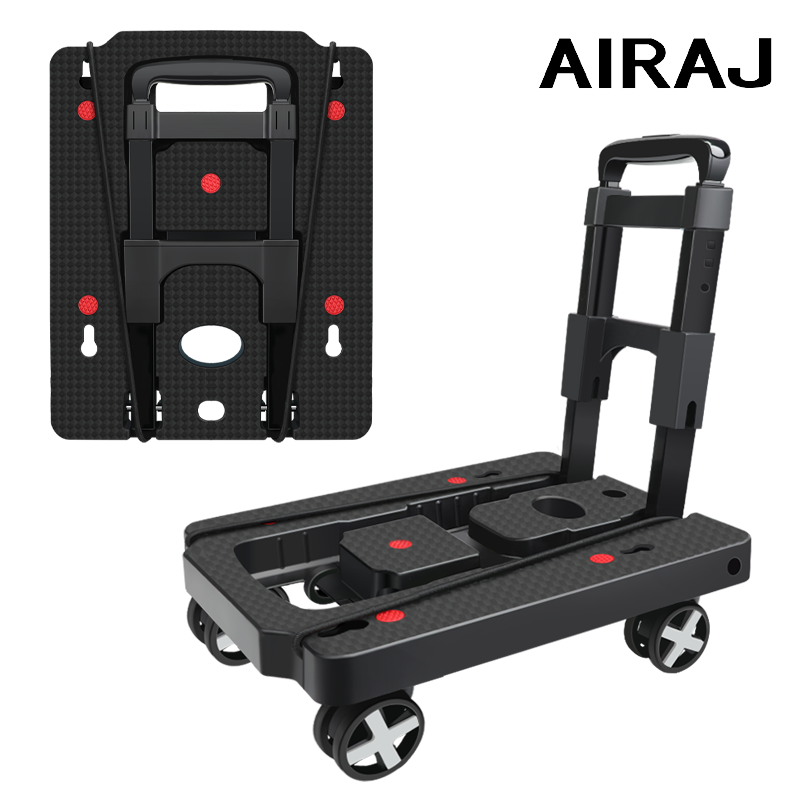 AIRAJ Folding Hand Truck Foldable Dolly Cart for Moving 110lbs Heavy Duty Luggage Platform Dolly with 4 Wheels & 2 Rope