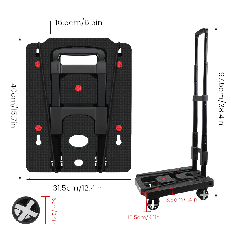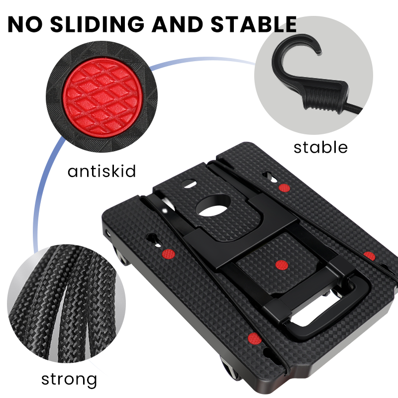 【Flat Folding Design】: This foldable dolly cart is easy to fold or unfold in a few seconds. Thanks to a unique and innovative fold-flat design, this foldable dolly cart is convenient for carrying or easy storage in a car's trunk, under a bed, in a closet, storage rooms or garages