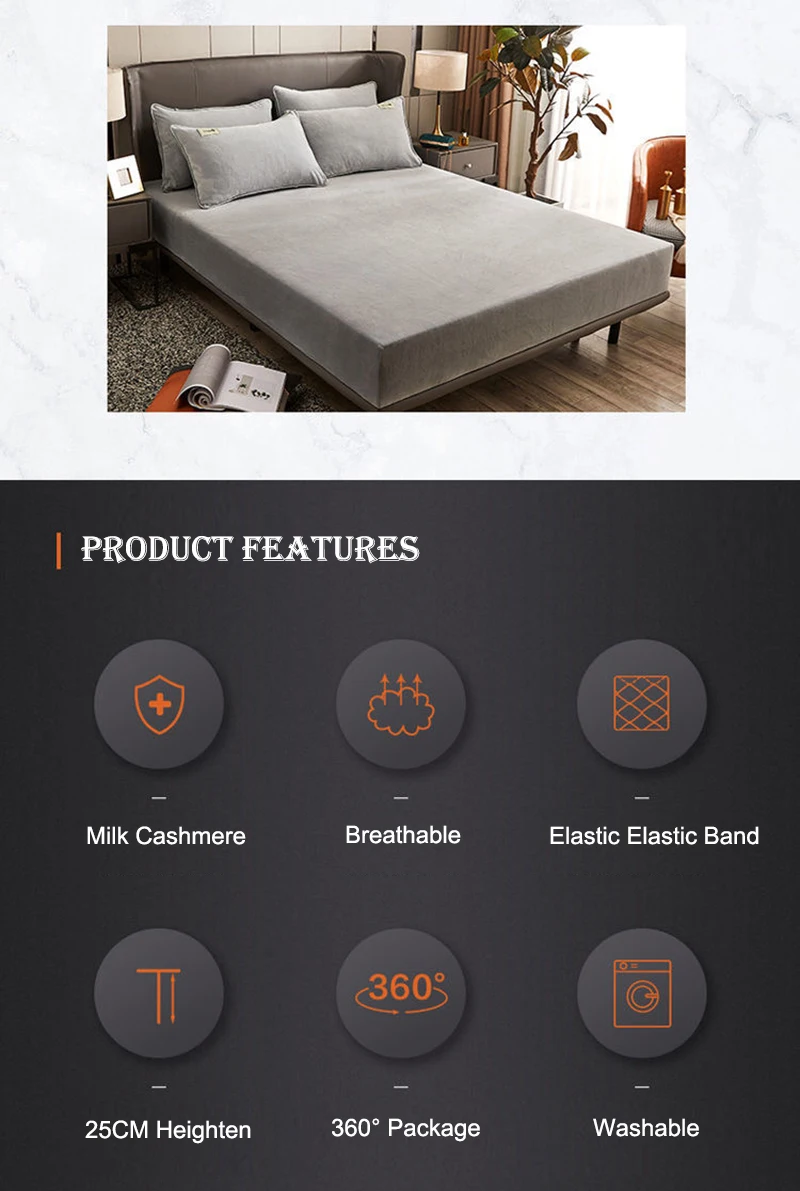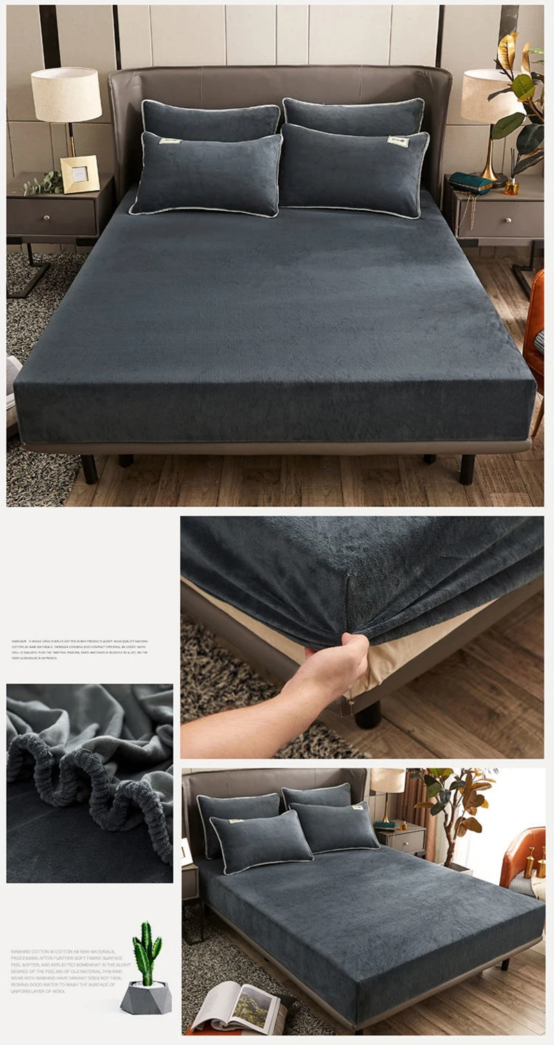 AISIRUI Warm Winter Plush Fitted Sheet Elastic Mattress Cover Fluffy Coral Fleece Bed Linen Luxury Double Bed Velvet Protector