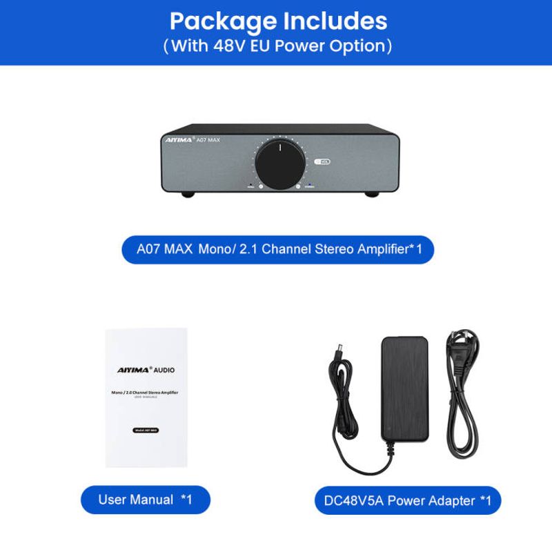 AIYIMA A07 MAX Amplifier Home Audio 300W X2 TPA3255 Class D Power Speaker Amp 2 Channel Bridgeable Mono 600 W Stereo Amplifier