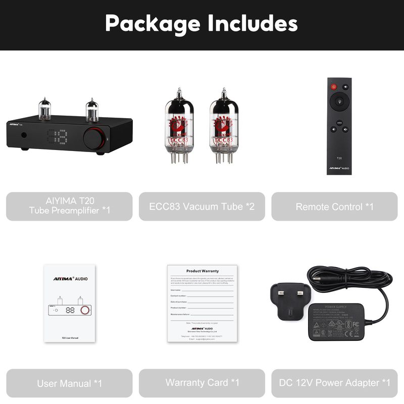 *For optimal performance of ECC83 tubes and to ensure low noise, it is recommended to match with downstream equipment featuring an input sensitivity of 2V (RCA) / 4V (XLR) and speakers with a sensitivity range of 88dB-92dB.