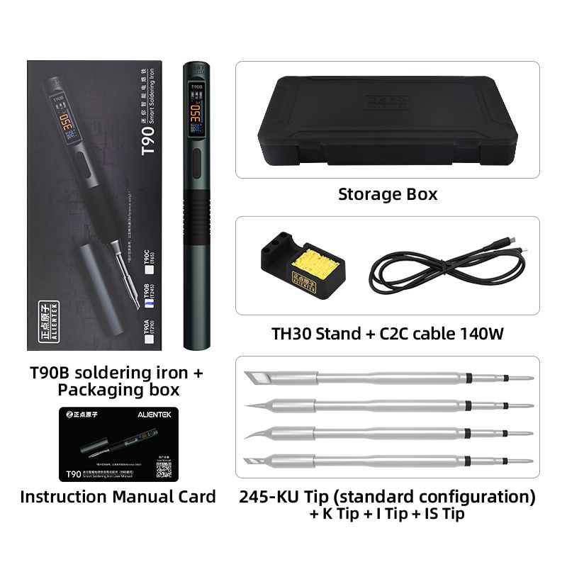 ALIENTEK T90 Smart Soldering Iron PD 140W Adjustable Temperature DC 28V 80-450℃ Welding Solder Station Kit C210 C245 T65 Tools