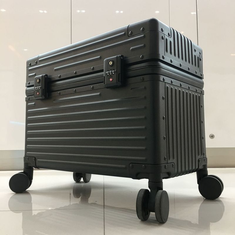 All-aluminum Luggage Travel Photography Trolley Case Black Rounded 20 Inches