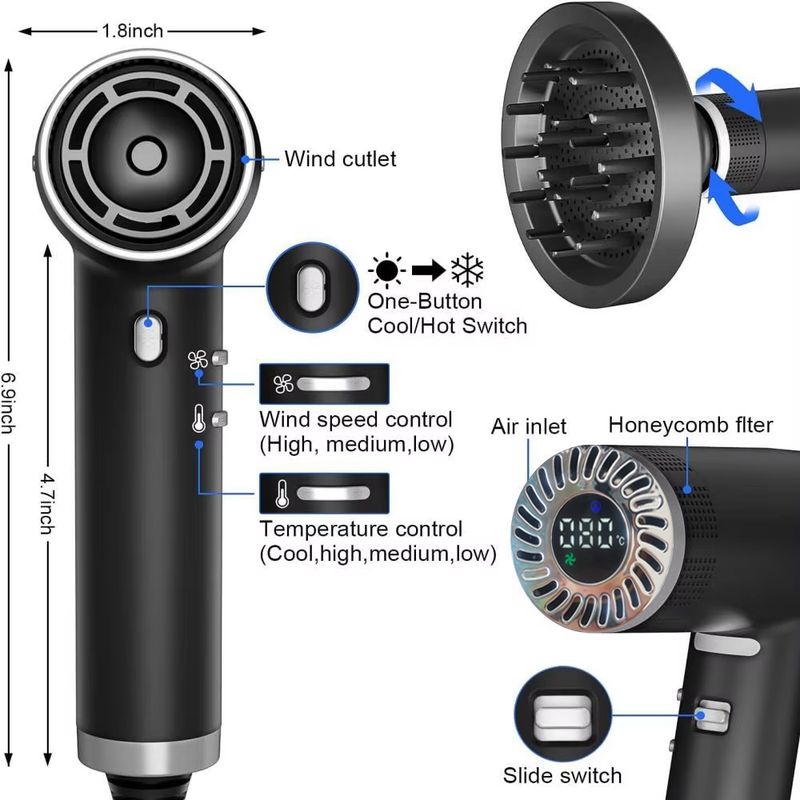All in 1 Professional Salon Hair Dryer 110000 RPM High-Speed Negative Ions Blow Dryer Airwrap Hair Styler Tools with Diffuser