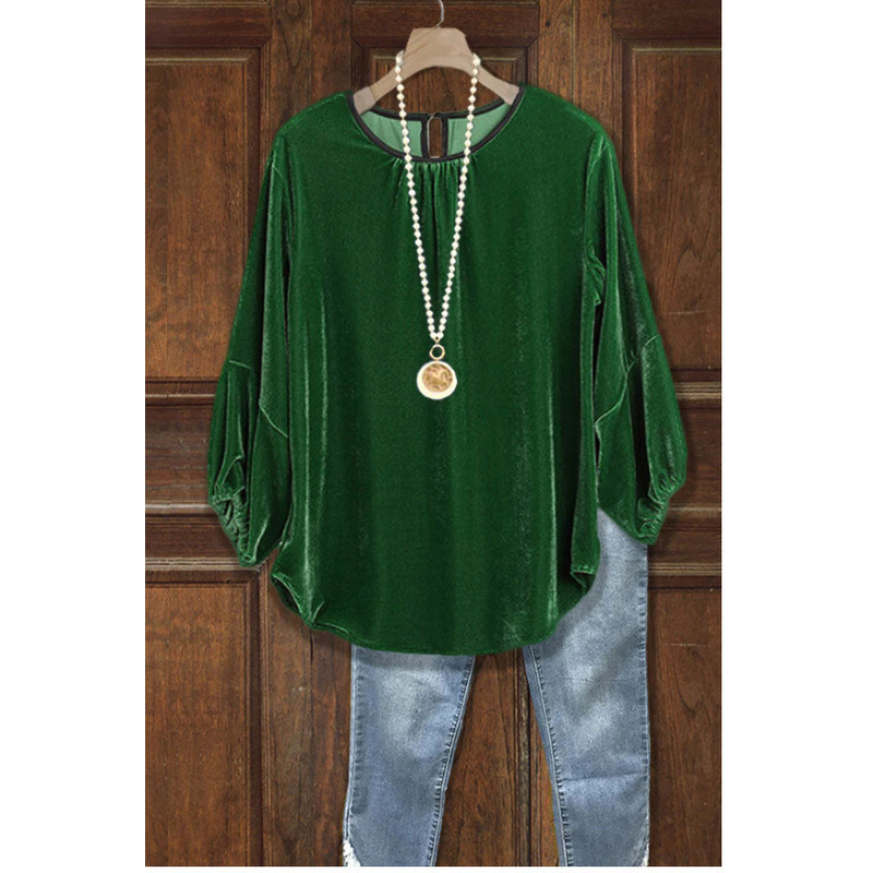 All-matching Elegant Loose Long Sleeve Bottoming Shirt Dark Green S
