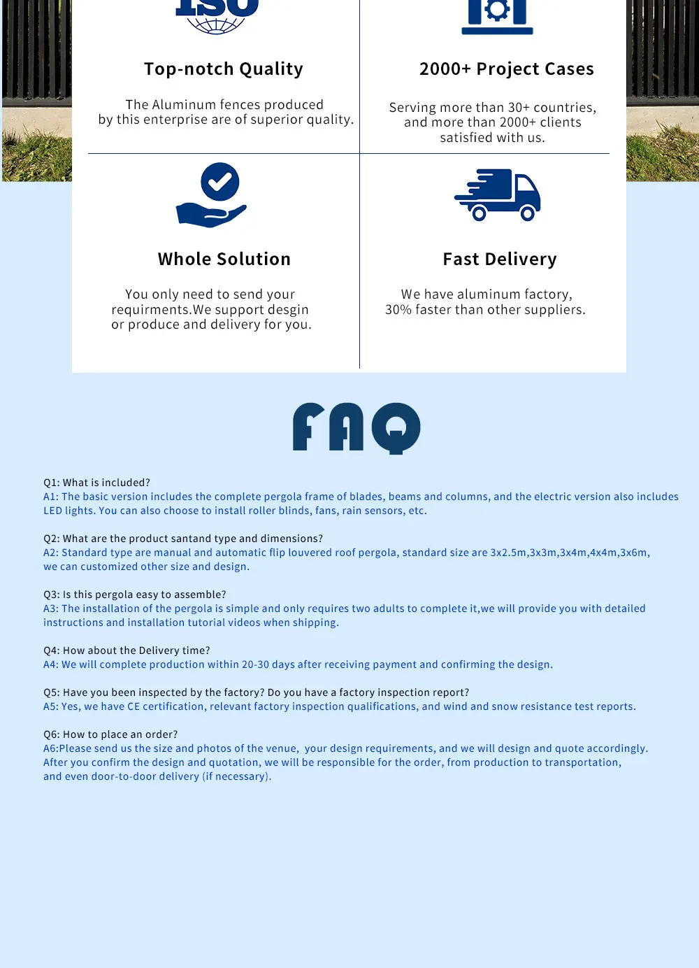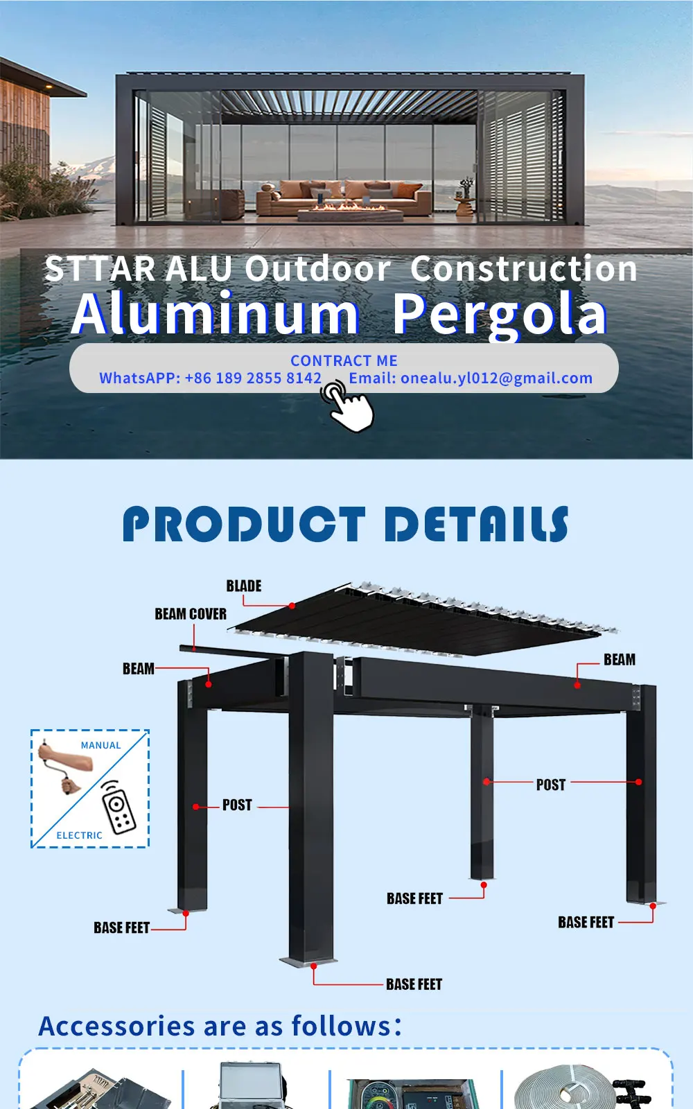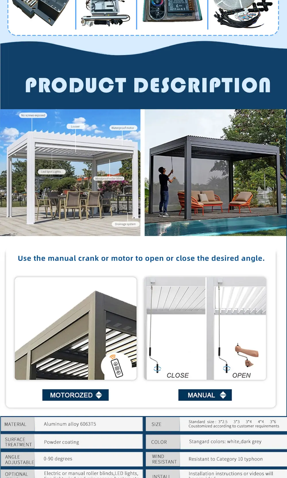 Price is price per square meter of pergola estimated price,not to the port,not to the house.If need to send to home ,please contact the seller for consultation to confirm final price before placing order .