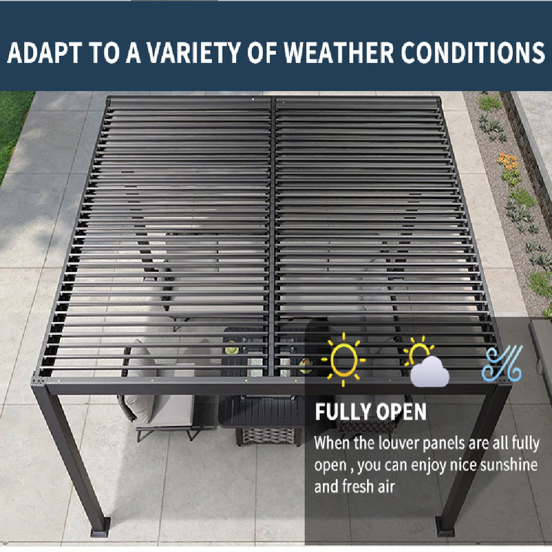 All-Weather Aluminum Bioclimatic Pergola – Adjustable Electric Louvers for Swimming Pool or Beachside Use