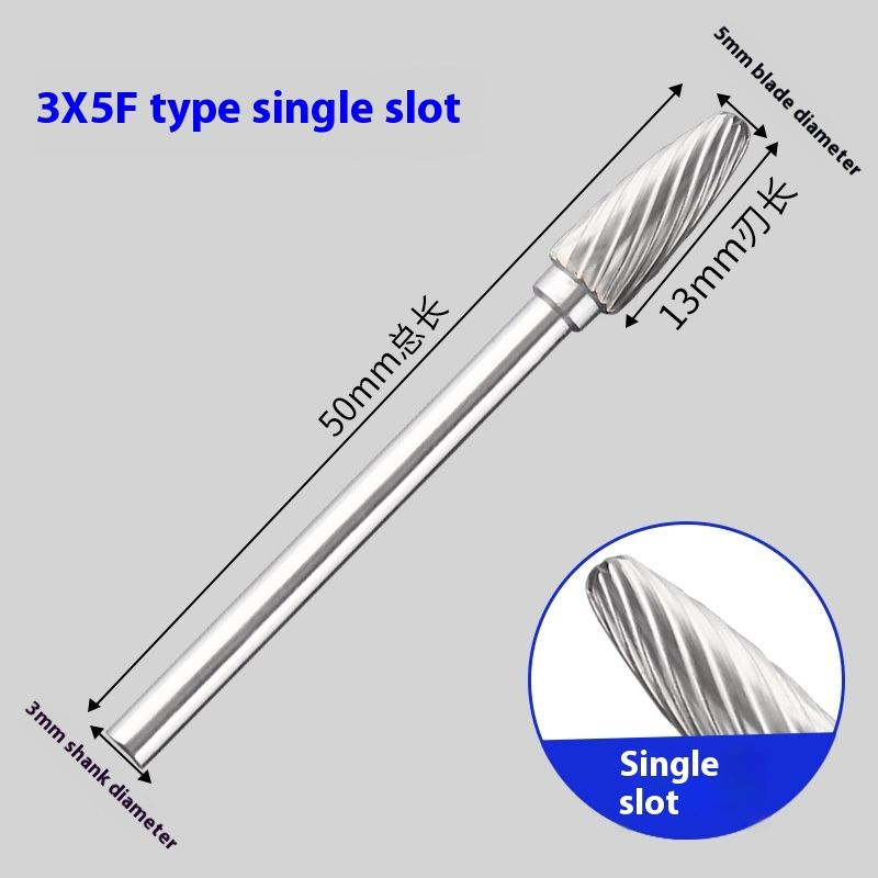 Alloy Rotary File Tungsten Steel Grinding Engraving Milling Cutter F-shaped F0513M3 Single Sink Rotating Burrs Alloy