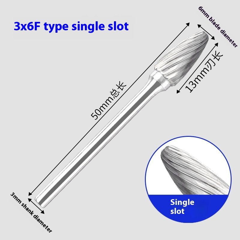 Alloy Rotary File Tungsten Steel Grinding Engraving Milling Cutter F-shaped F0613M3 Single Sink Rotating Burrs Alloy