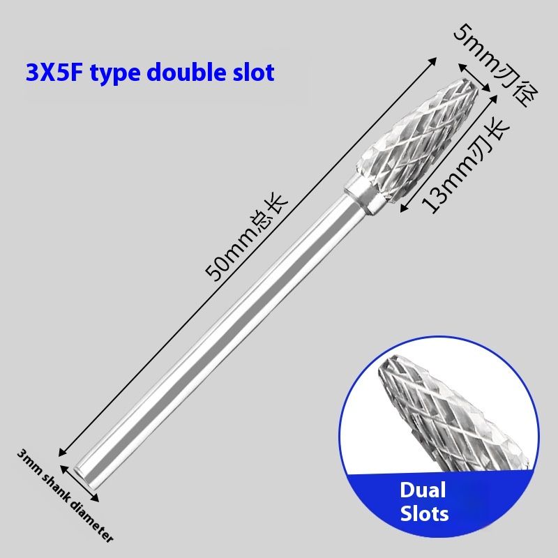 Alloy Rotary File Tungsten Steel Grinding Engraving Milling Cutter F-shaped FX0513M3 Double Slot Rotating Burrs Alloy