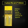 A pack of 5, including flat files, semi-round files, triangular files, square files, round files, knife-shaped files
