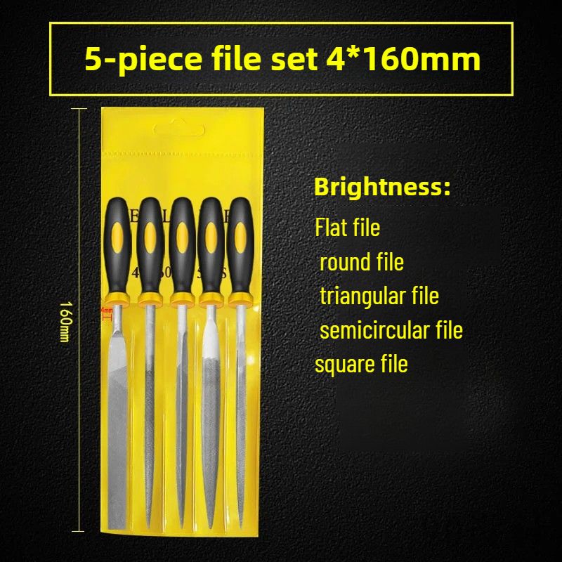 A pack of 5, including flat files, semi-round files, triangular files, square files, round files, knife-shaped files