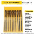 A pack of 5, including flat files, semi-round files, triangular files, square files, round files, knife-shaped files