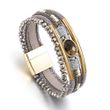 ALLYES Charm Crystal Stone Beaded Leather Bracelet for Women Retro Metal Tube Handmade Braided Multilayer Wrap Bracelets Jewelry