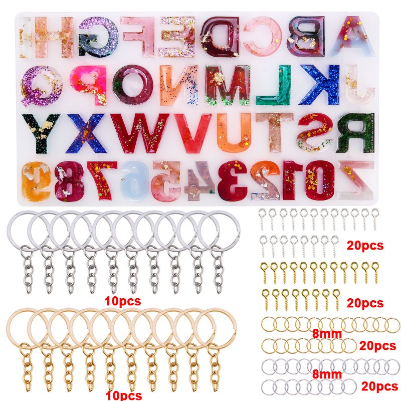 Alphabet Epoxy Resin Mold Kit Reverse Letter Number Silicone Molds Epoxy Casting Mold for Key Chain Pendant Making DIY Jewelry