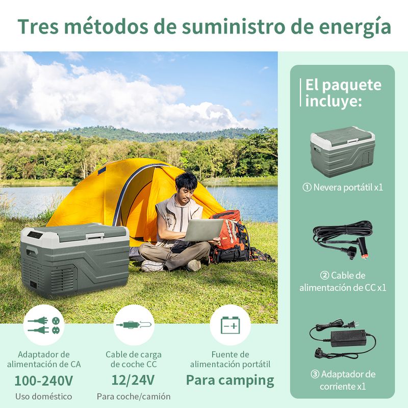 Equipped with a reversible door, which you can install the door on the other side to meet your needs. Built-in interior LED lights for easy using at night. Drain hole in the bottom of the electric cooler makes it convenient to clean. With durable latch and sturdy handle for easy opening and lifting. These thoughtful designs ensure a stable operation of the refrigerator in various scenarios.PACKAGE INCLUDED