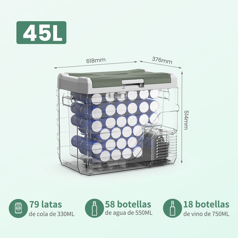 Equipped with a reversible door, which you can install the door on the other side to meet your needs. Built-in interior LED lights for easy using at night. Drain hole in the bottom of the electric cooler makes it convenient to clean. With durable latch and sturdy handle for easy opening and lifting. These thoughtful designs ensure a stable operation of the refrigerator in various scenarios.PACKAGE INCLUDED