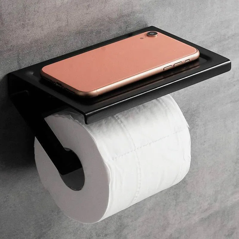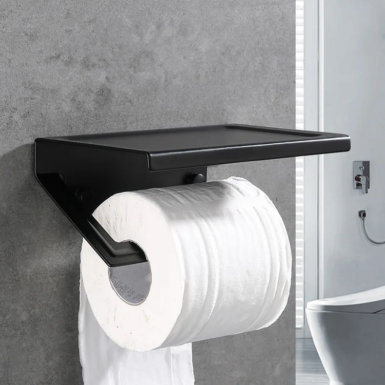 Aluminum Bathroom Paper Mobile Phone Holder with Shelf Bathroom Toilet Paper Towel Rack Roll Holder Bathroom Tool