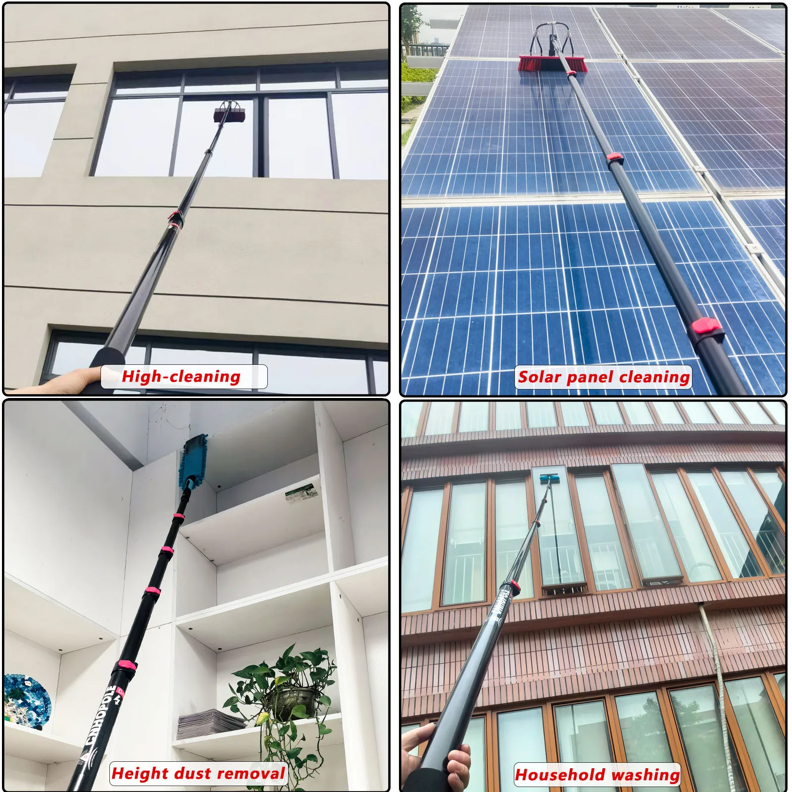 TO INFINITY AND BEYOND:Extending from 1.2/1.5 to 3.6/4.6/6/7.2 meters, the retractable telescoping pole will give you up to 3/4/6 meters reach when standing, making it easy to accomplish all your hard-to-reach tasks. Adjust the long pole to the length necessary for your specific task:reaching high ceilings, painting walls, dusting light bulbs, cleaning house roofs, washing windows, and more. The telescopic pole is the ultimate answer for your daily household tasks.